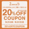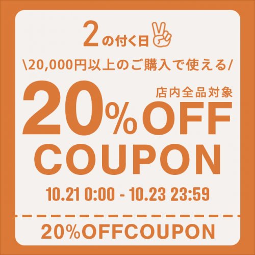 - 【2のつく日】店内全品対象!2万円以上のお買い物で20%OFFクーポンを配布します! - 2025年10月20日