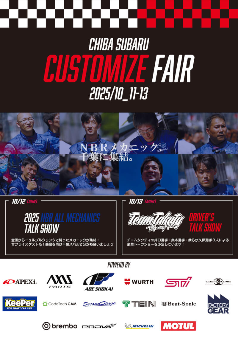 - 10/11(土)12(日)13(月))は千葉スバルカスタマイズフェアに出店! - 2025年10月3日
