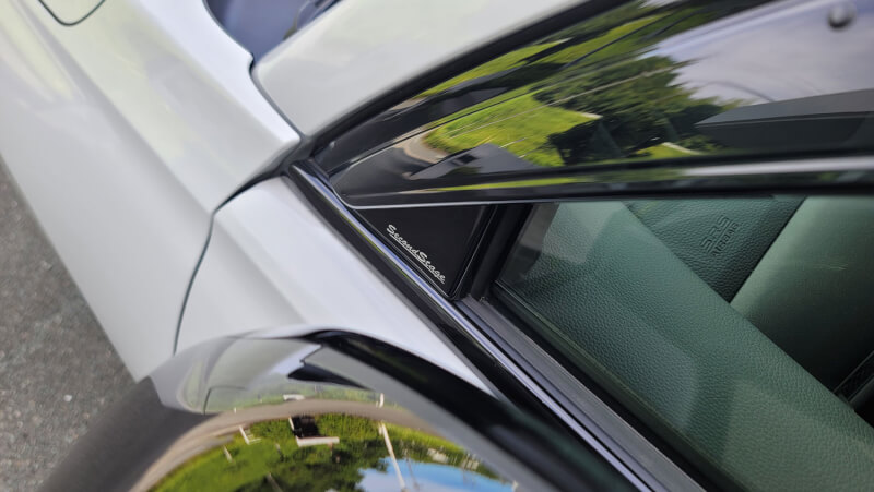 エクステリアにもピアノブラックをお取付けいただきました。Aピラー箇所にもSecondStageのロゴが・・・!