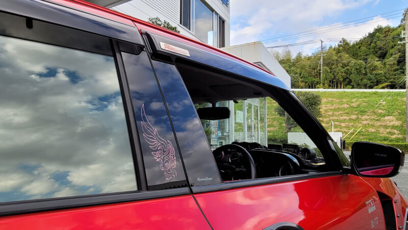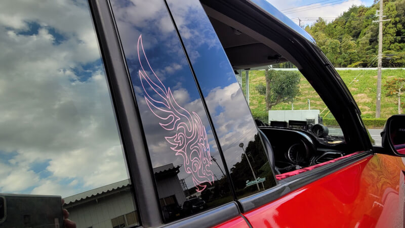 ピアノブラックのピラーガーニッシュに羽デザインを刻印です・・・!