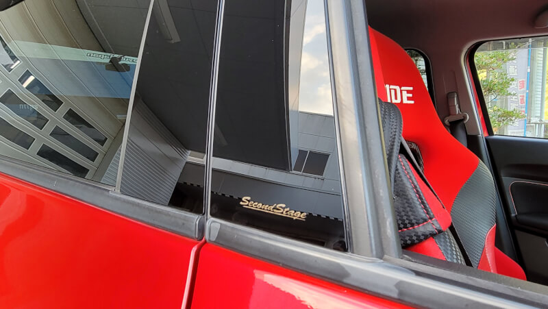 もともと艶黒のピラー箇所。ピアノブラックを装着する事でどう変わるのか、お問合せも多数いただいているので、装着前後の比較を撮影させてもらいました!