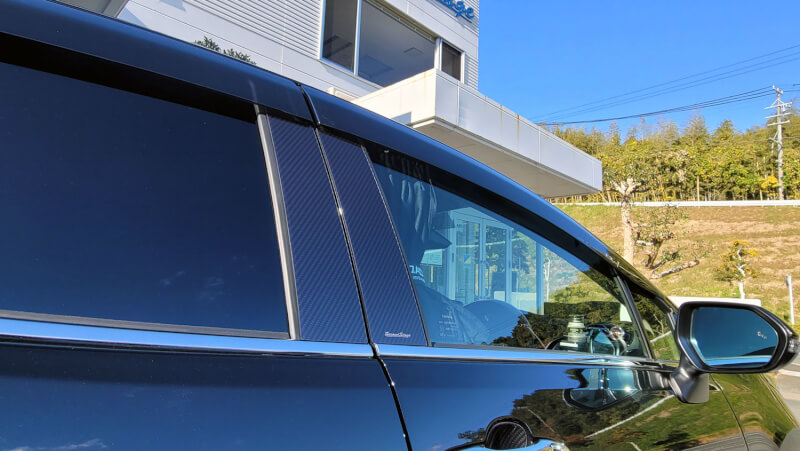 追加でピラーガーニッシュもお取付けいただきました!プロテクターパネルに合わせてカーボンをお選びいただいています。