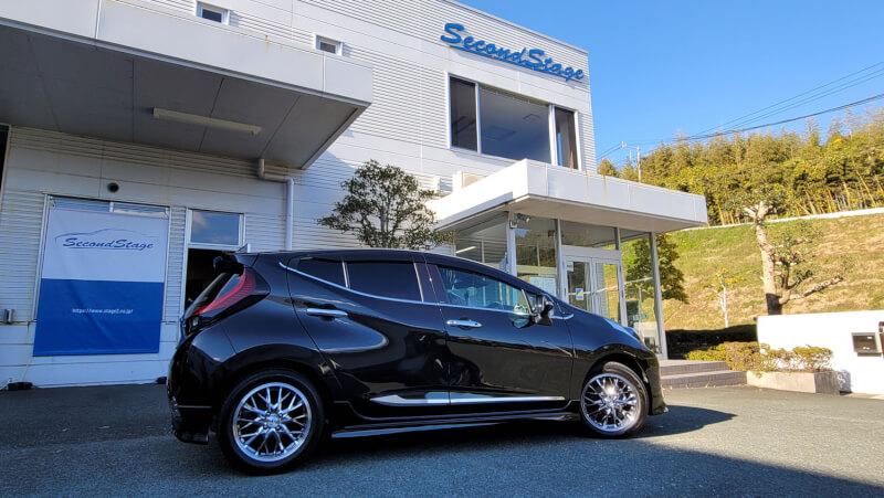クルマもツヤツヤ、ピラーガーニッシュもツヤツヤです・・・!カーボンとメッキのコーディネートがとても素敵な1台です。