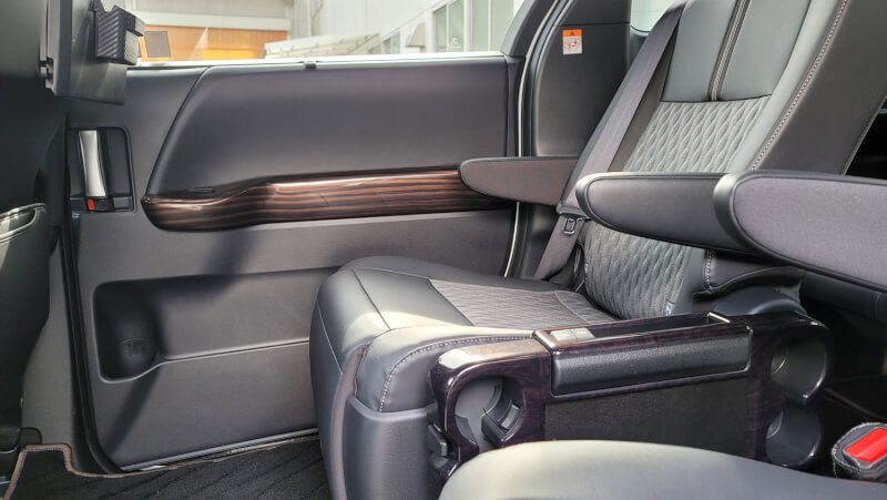 車両の真ん中は黒木目、両サイドはエボニー調と組み合わせを楽しんでいただいています!