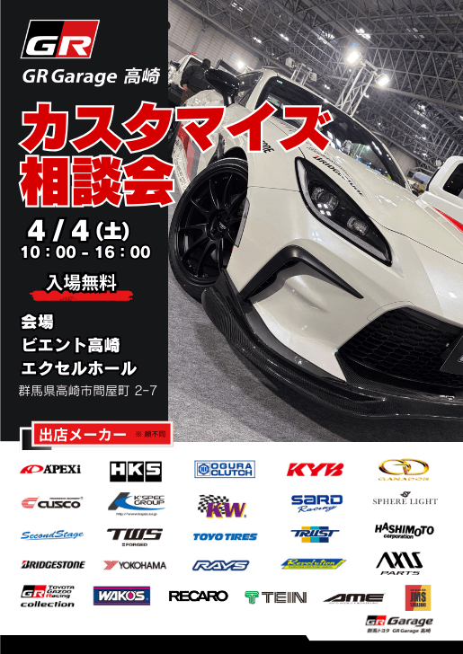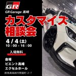 4/4(土)は GR Garage高崎カスタマイズ相談会に出店!