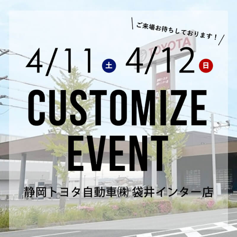 4/11(土)12(日)は 静岡トヨタ自動車㈱ 袋井インター店カスタマイズイベントに出店!