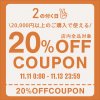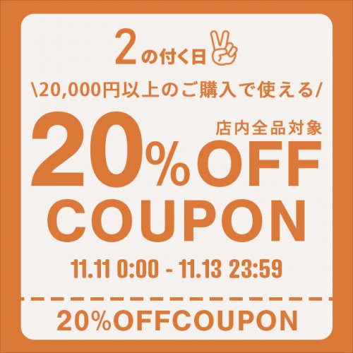 【2のつく日】店内全品対象!2万円以上のお買い物で20%OFFクーポンを配布します!2025.11.10店内全品対象!2万円以上のお買い物で、20%OFFクーポ…►この記事を読む -